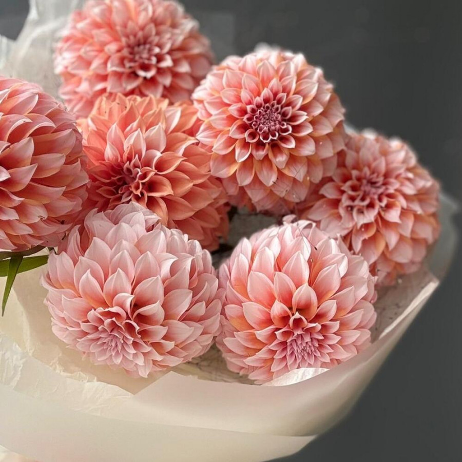 Букет из 9 персиково-розовых георгин